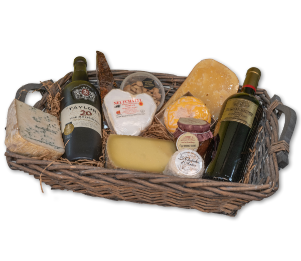 Een echt luxe pakket! Kies welke type wijn,port of bier u wilt geven, dan zoeken wij er bijpassende kazen en delicatessen bij.