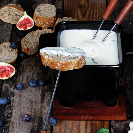 Deze mooie licht pikante geitenkaas fondue is een echte topper. Geliefd bij het Ed Boele kaasteam. Door de eigenschapen van geitenkaas is deze fondue licht verteerbaar. Voeg verse kruiden toe en maak een waar feestje. Gemaakt met belegen geitenkaas en Crottin (franse chèvre).