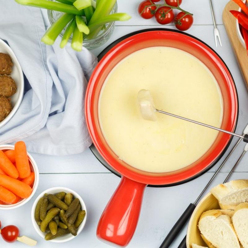 Een zachte Zwitserse fondue van Emmentaler, Gruyère en Appelzeller, zoals wij het in Nederland kennen!