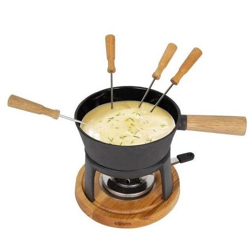Een fonduepan die geschikt is voor elk type fornuis, dus ook inductie? Ja! Fonduen met de Fondueset Pro is een belevenis op zich. Door de gietijzeren pan smelt alle kaas gelijkmatig en brandt deze minder snel aan. Geschikt voor elk type fornuis. De gietijzeren pan met houten handvat en het gietijzeren onderstel geven deze Fondueset Pro een stoere en stijlvolle uitstraling. De pan heeft een inhoud van 1,2 liter; dit is genoeg ruimte 4 personen kaasfondue.