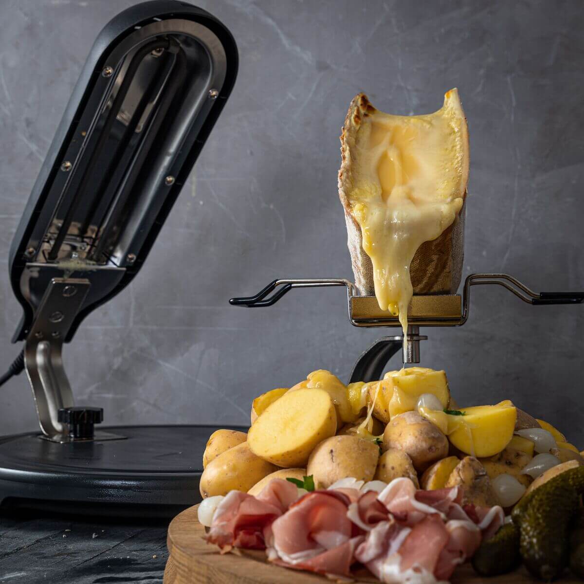 Ook met dit Zwitserse hoogstandje kan ge-raclette worden. Dankzij het zachte verfijnde en licht aromatische zuivel, smelt deze kaas goed. De natuurkorst wordt krokant bij het verwarmen en kan mee gegeten worden.